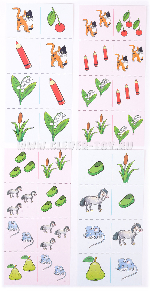 В комплект входят 12 карточек, 48 картинок и 9 увлекательных игр.