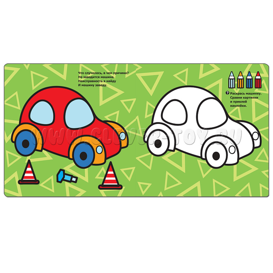 Развивающая книжка с наклейками предназначена для малышей от 2 до 3 лет. Состоит из наклеек, способствующих развитию мелкой моторики, незатейливых картинок, ярких цветов, а толстый контур помогает скрыть неровности раскрашивания. На странице изображен раскрашенный предмет или объект, знакомый каждому ребенку, а на другой такой же объект, только "чистый" и с небольшим отличием, которое нужно найти и наклеить.
