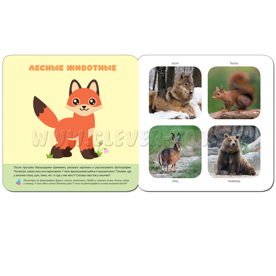 - лесные животные (белка, волк, медведь, заяц);