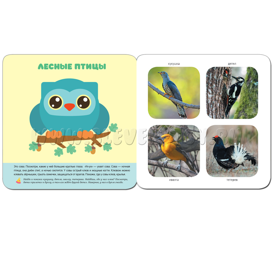 - лесные птицы (кукушка, дятел, иволга, тетерев);