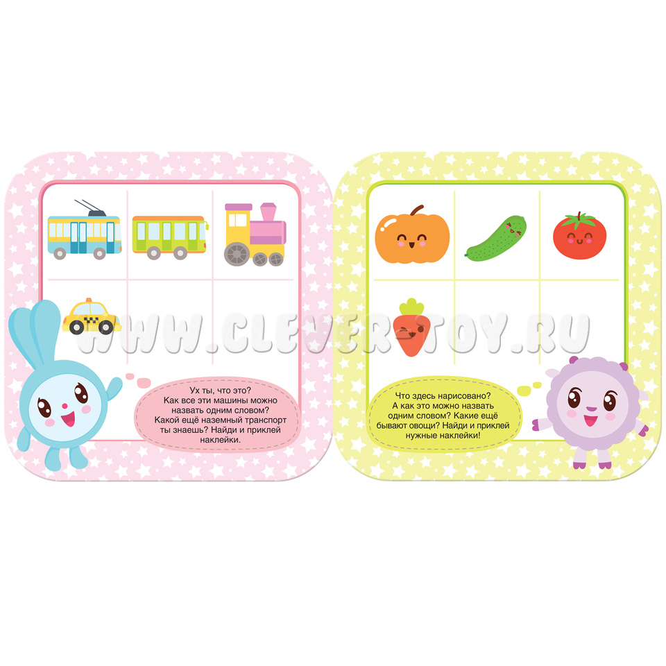 Герои книги – малышарики Крошик, Нюшенька, Ёжик, Пандочка и Барашик – предлагают малышу научиться решить простую задачу: найти общее и дополнить ряд.