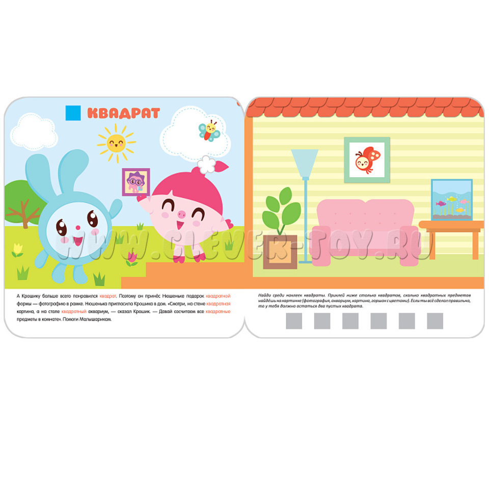 Книжка с наклейками предназначена для малышей от двух лет. Развивающая книжка, вместе с героями любимого мультфильма, расскажут о пяти основных фигурах, а еще поможет запомнить цвета. На каждой странице написаны интересные задания для того, что бы малыш смог познакомиться с формами.