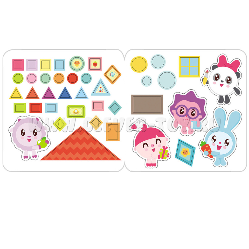 Помимо ярких иллюстраций в книжке есть вставка с наклейками с различными фигурами для каждого задания. Книжка сделана из мелованной матовой бумаги. Включает в себя 6 страниц и 2 дополнительных страницы с разноцветными наклейками. Купить развивающее пособие можно в нашем магазине с доставкой в любой город России!