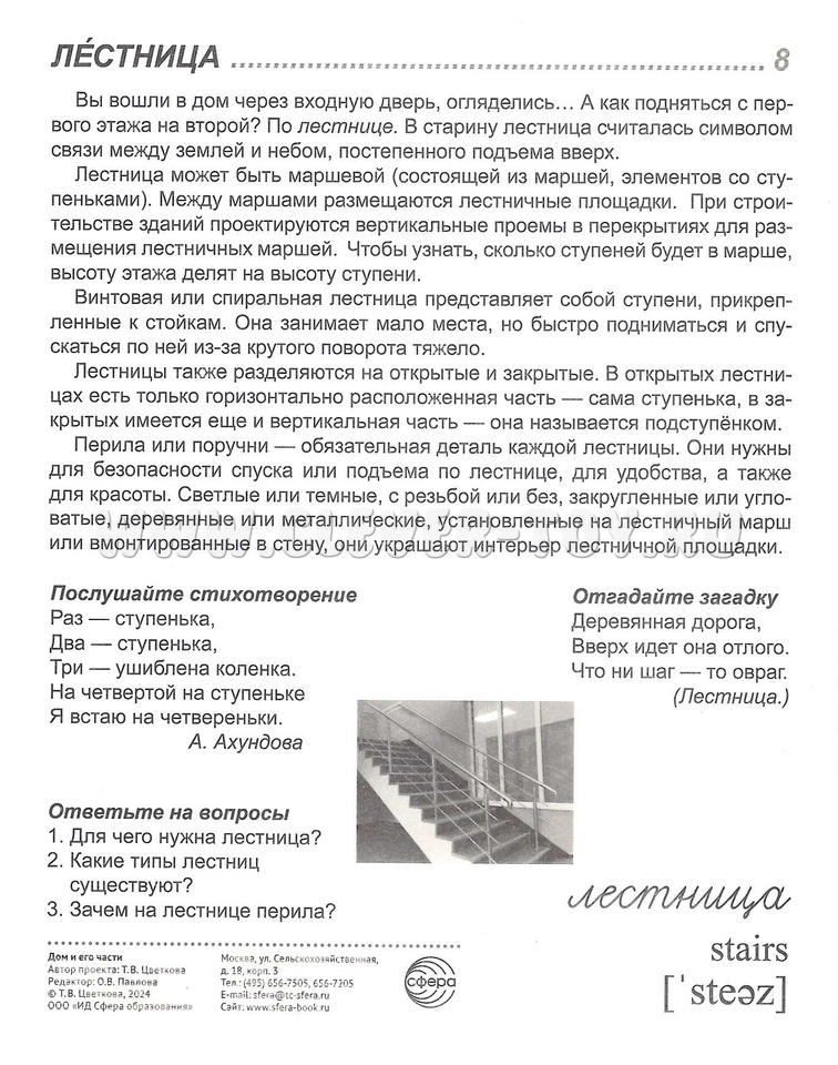 16 демонстрационных картинок для познавательного и речевого развития. На обороте каждой предметной картинки - описание дома и его частей, стихотворение, загадка, вопросы для ребёнка, название животного на русском и английском языках.