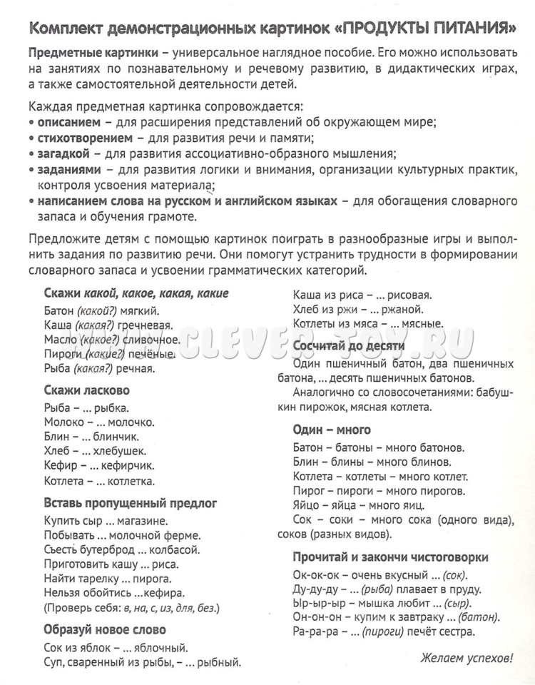 Откройте мир здорового питания вместе с нашими демонстрационными карточками! На каждой карточке вы найдёте информацию о продуктах, стихотворение, загадку и впоросы. В процессе бесед обсудите, какие продукты нравятся вашему ребёнку, а какие он ест неохотно.