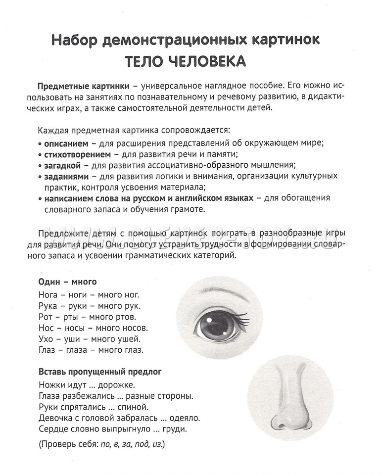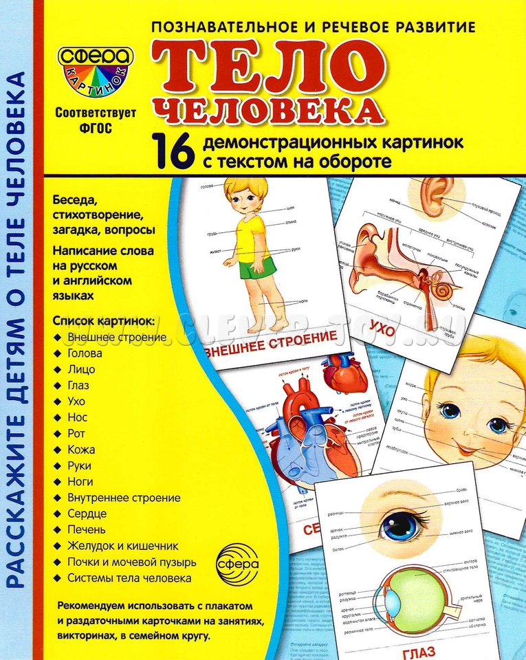 Откройте удивительный мир человеческого тела с нашими демонстрационными карточками! Эти уникальные материалы помогут вашему ребёнку узнать всё о своём теле, развить внимательность и любознательность.