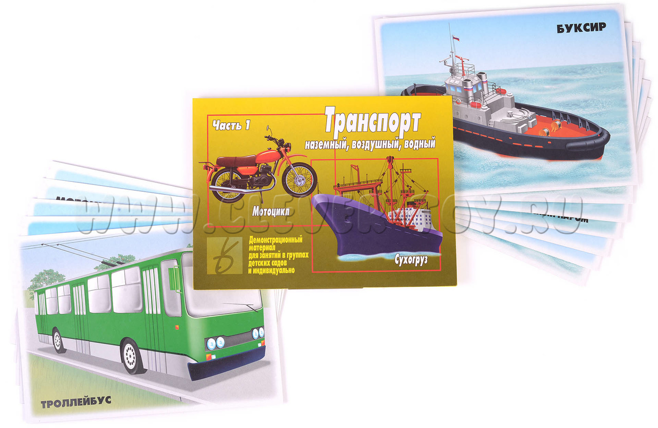 Предлагаем демонстрационный материал, знакомящий детей с транспортом - водным, наземным и воздушным. Изображения на картинках реалистичные и дают полное представление об изучаемом транспорте. Пособие подходит для занятий в группах детского сада, а также индивидуально.