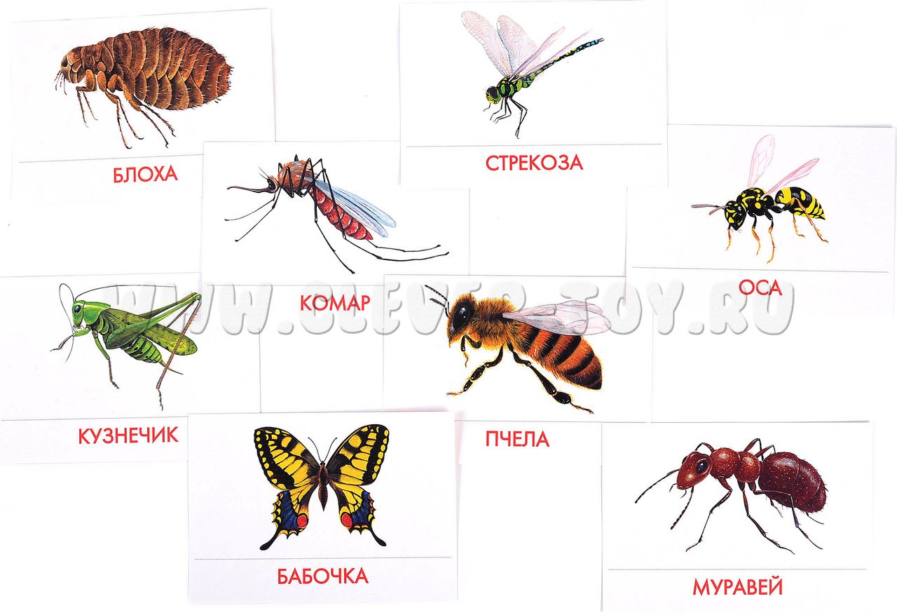 В набор водит 16 карточек с изображениями насекомых:
