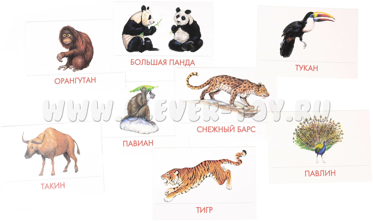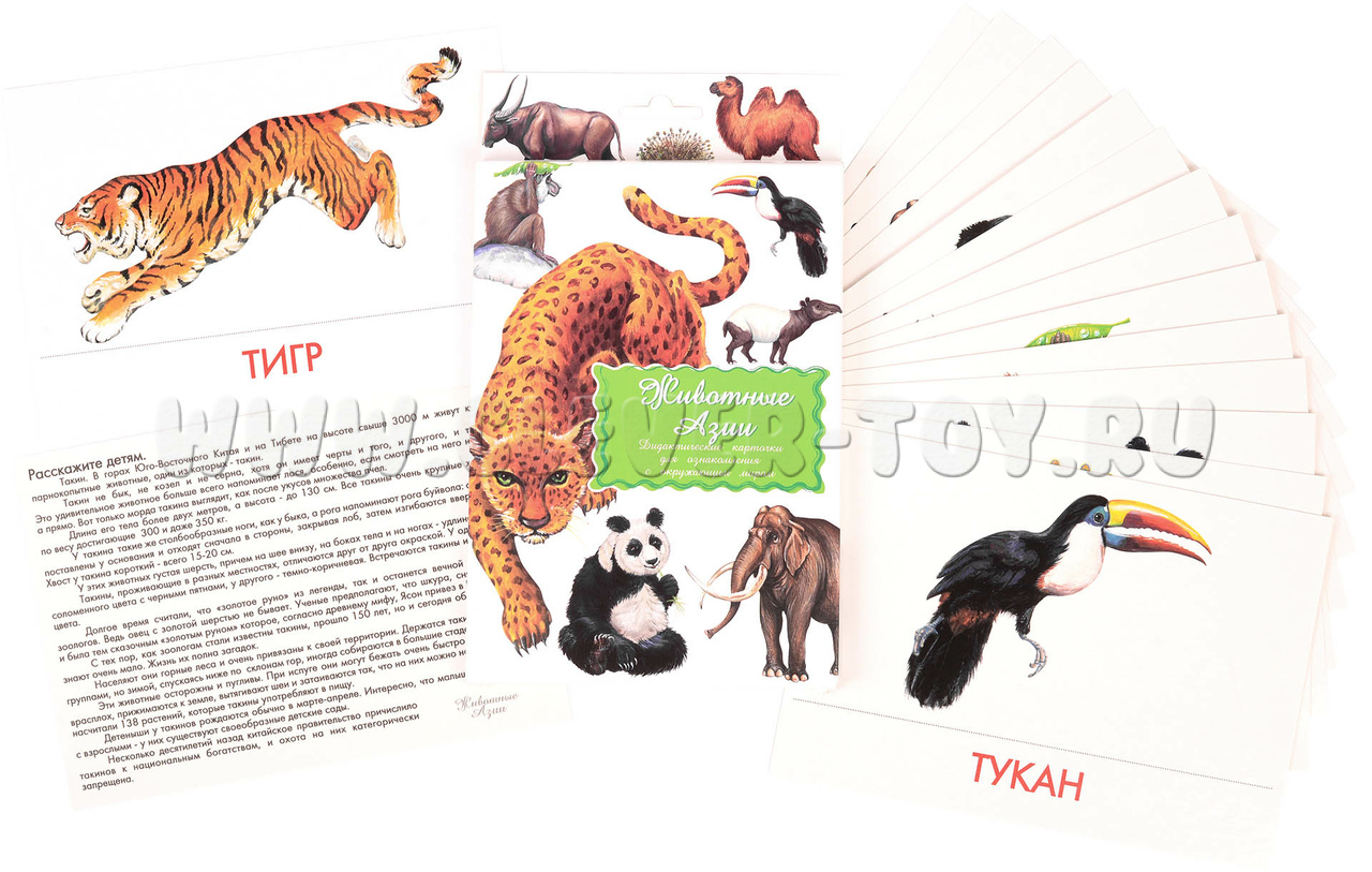 В набор водит 16 карточек с изображениями животных, обитающих в Азии: