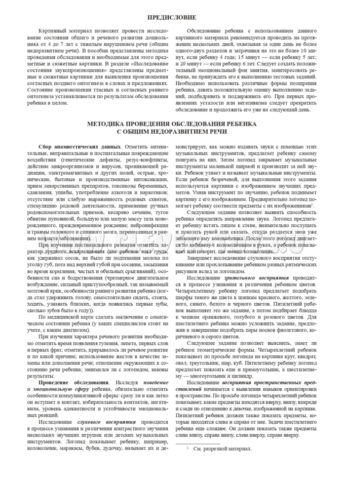 Пособие предназначено для исследования состояния речевого развития ребенка 4-7 лет с общим недоразвитием речи и позволяет проследить динамику развития речи.