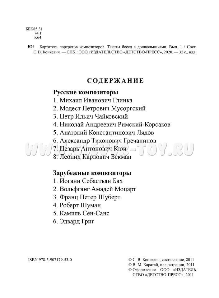 Картотека портретов композиторов. Тексты бесед с дошкольниками. Выпуск 1. ФГОС.