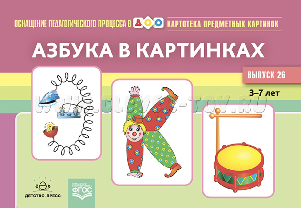 Издание "Азбука в картинках" представляет собой пособие по обучению грамоте детей дошкольного возраста и позволяет в игровой и занимательной форме запомнить названия букв, расположение элементов в пространстве, научиться составлять и читать слова.