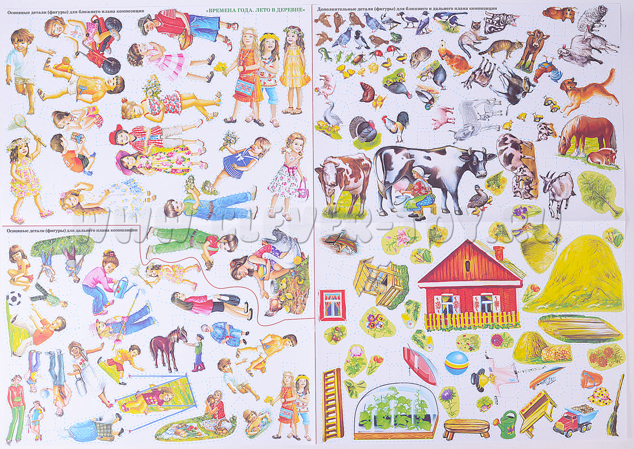 - плакат (А1) с изображением основных и дополнительных фигурок (100-150 штук) для вырезания и наклеивания на сюжетную картину;