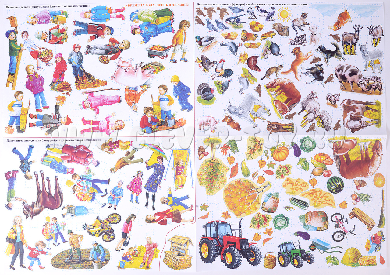 - плакат (А1) с изображением основных и дополнительных фигурок (100-150 штук) для вырезания и наклеивания на сюжетную картину;