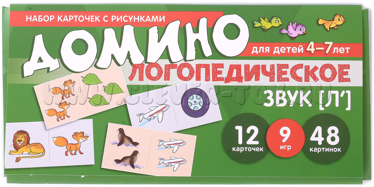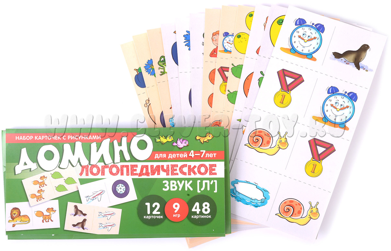 "Логопедическое домино" - это набор из 12 обучающих карточек с 48 парными картинками. В игровой форме дети учатся правильно произносить звук [л'], образовывать форму множественного числа существительных и согласовывать их с числительными и прилагательными.