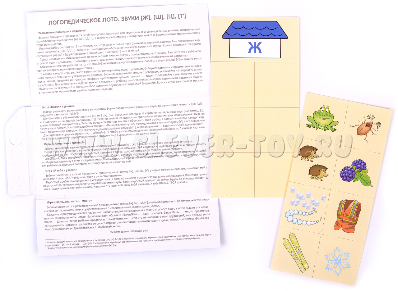 Комплект "Логопедическое лото. Учим звуки [Ж] [Ш] [Ц] [Т’]" - это не только полезное обучающее пособие, но и занимательная игра, которая сделает занятия интересными и увлекательными для детей. Развивайте речь своего ребенка с удовольствием и достигайте замечательных результатов!