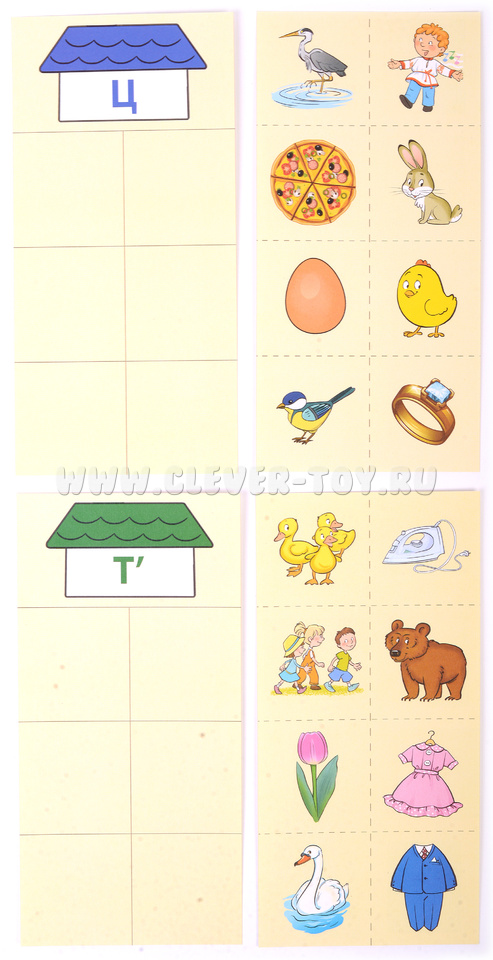 Цель комплекта - обучение детей различать и произносить звуки [Ж] [Ш] [Ц] [Т’]. С помощью игровой формы детям предлагается называть предметы, разделять их на живые и неживые, определять место звука в слове и составлять предложения. Таким образом, комплект помогает автоматизировать произношение звуков и развивает связную речь.