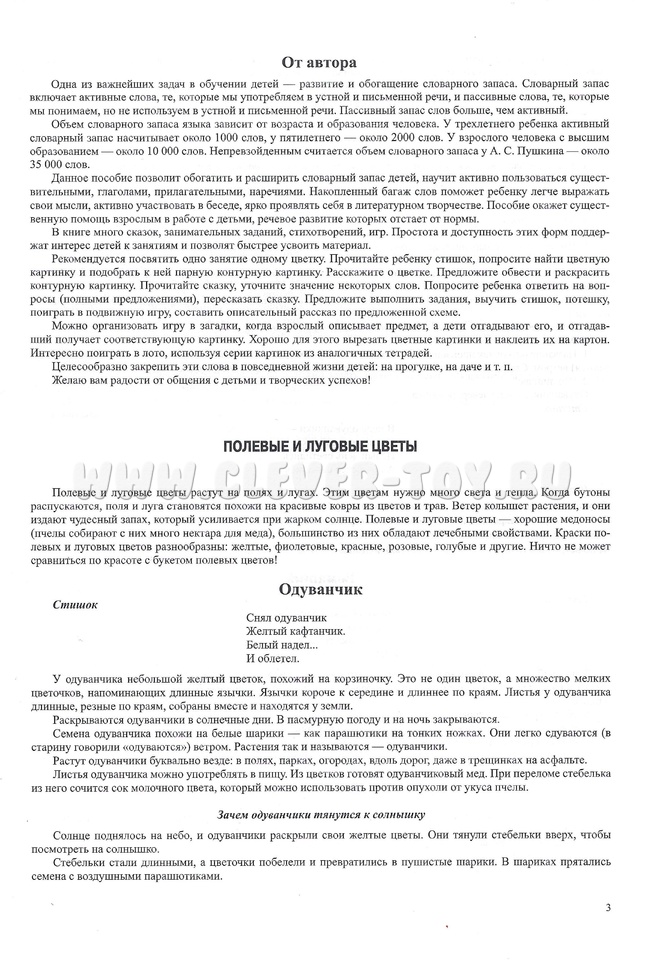 Пособие поможет обогатить и расшить словарный запас детей, научит активно пользоваться существительными, глаголами, прилагательными, наречиями. В книге много сказок, занимательных заданий, стихотворений и игр.