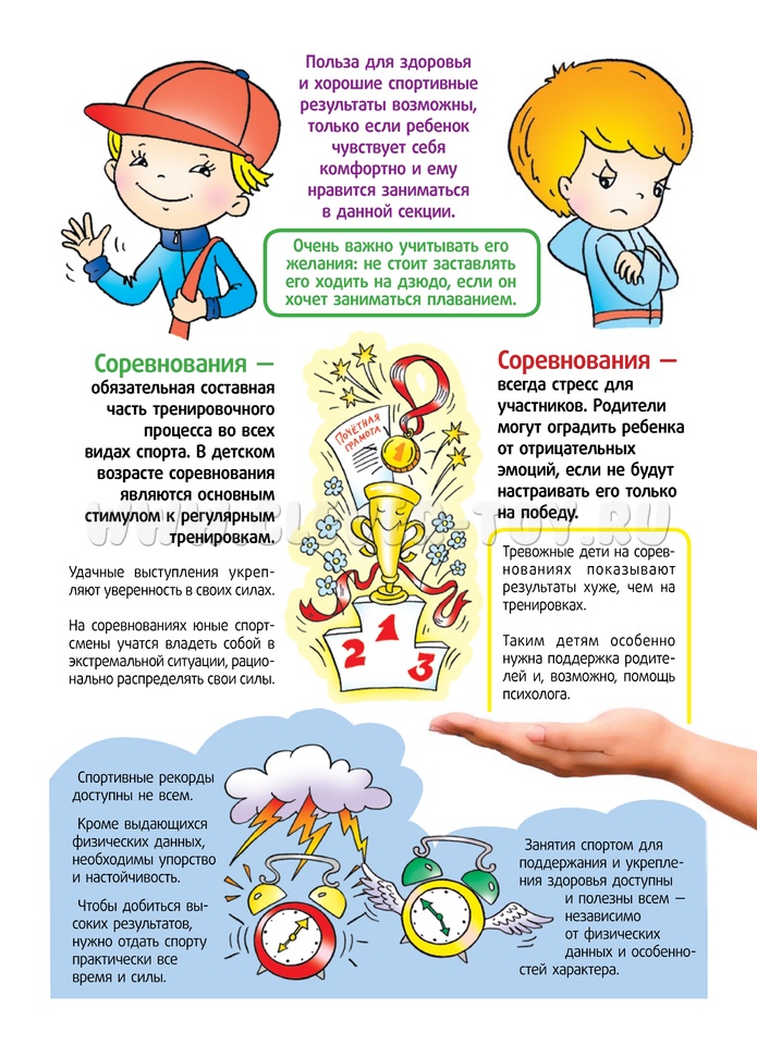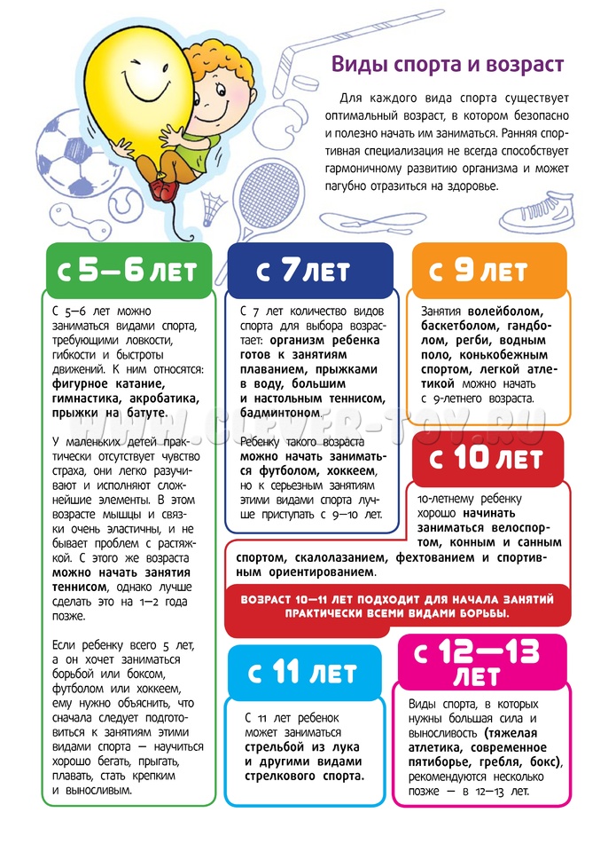 Выбирая спортивную секцию для ребенка, необходимо учесть много факторов. Каждый вид спорта имеет плюсы и минусы. Главное - понять, что нужно и полезно именно вашему ребенку. Представленная информация будет полезна для педагогов и инструкторов по физической культуре ДОО при оформлении уголков для родителей.