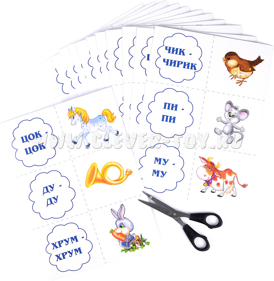- Игра наоборот: раздайте детям карточки со звуками и начните поочерёдно показывать карточки с картинками;