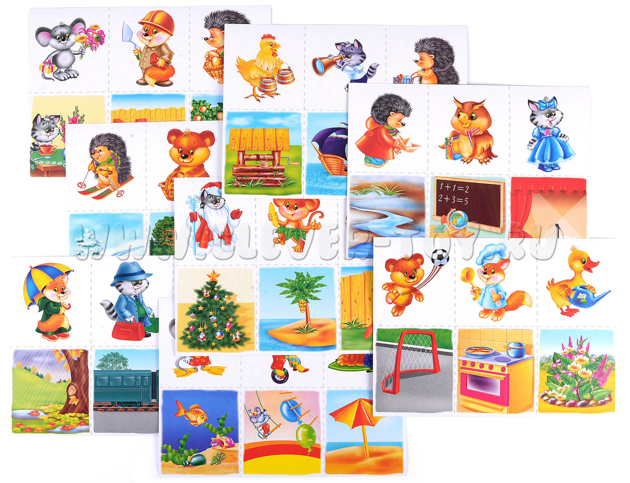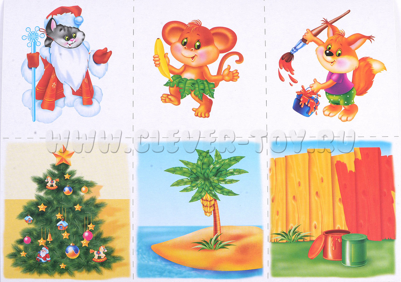 Если играет несколько детей, раздайте им поровну карточки с животными. Показывайте поочерёдно карточки с сюжетами. Тот ребёнок, которому нужна картинка с этим сюжетом, забирает её себе.