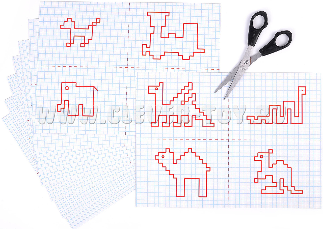 - Рисовать можно и под диктовку: выберите любое изображение и предложите малышу нарисовать узор под вашу диктовку (одна клетка вверх, две клетки вправо и т.д.);