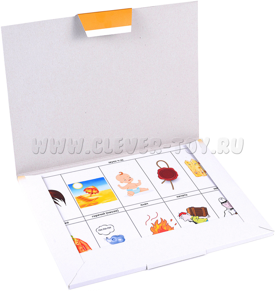 Набор включает в себя 14 игровых полей (5 пар слов с картинками на каждом) и 3 листа А4 с цветными разрезными карточками (используются в качестве вспомогательного материала при организации игрового процесса). Перед началом игры цветные карточки необходимо вырезать.