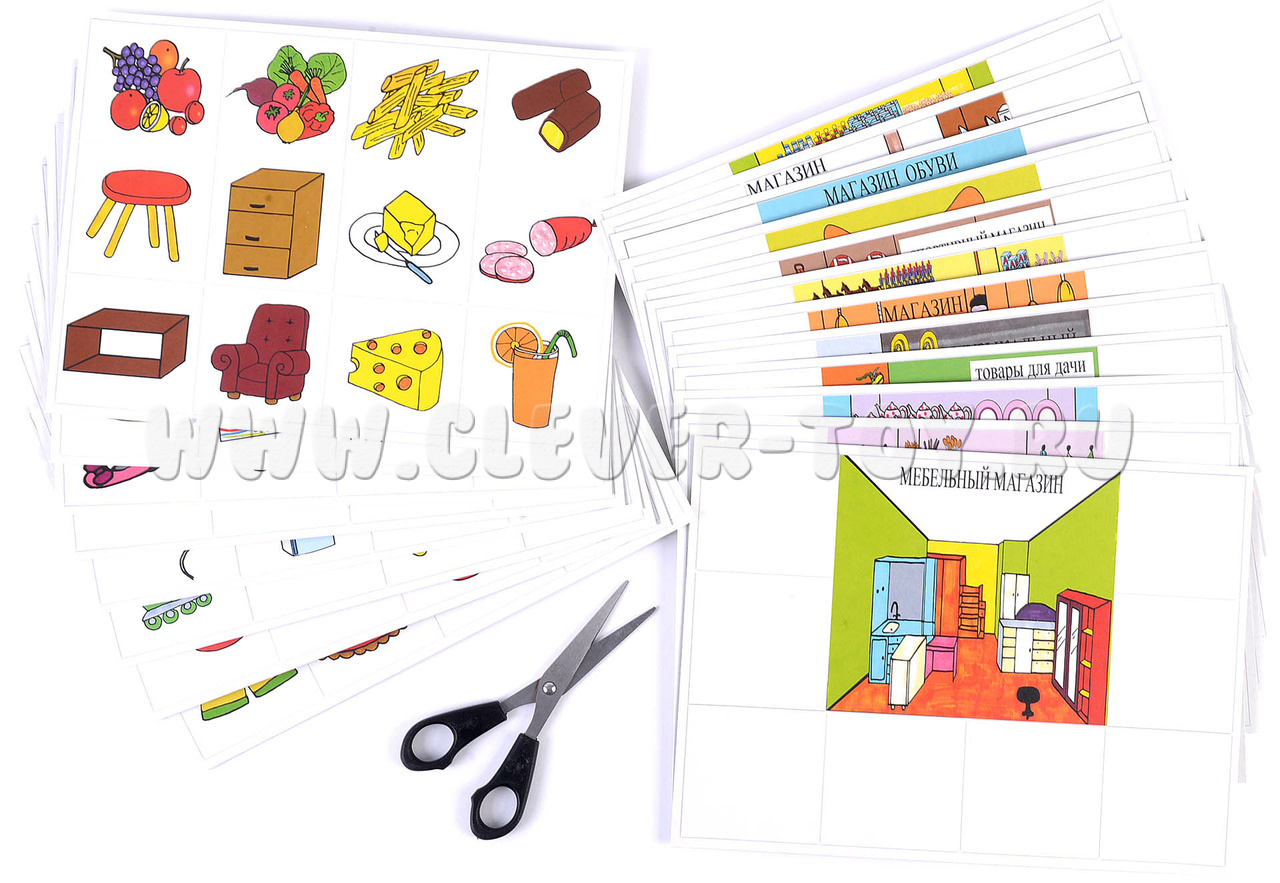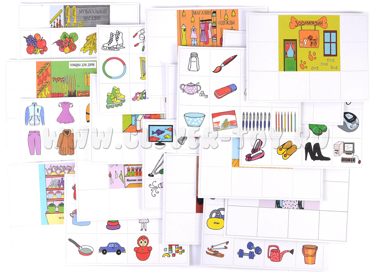 - Ребенок раскладывает карточки по соответствующим игровым полям, называет все предметы.