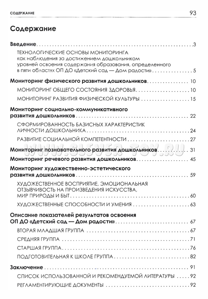 Пособие предлагает рекомендации и материалы для воспитателей, работающих по программе "Детский сад - Дом радости", чтобы они могли отслеживать прогресс детей в изучении этой программы.