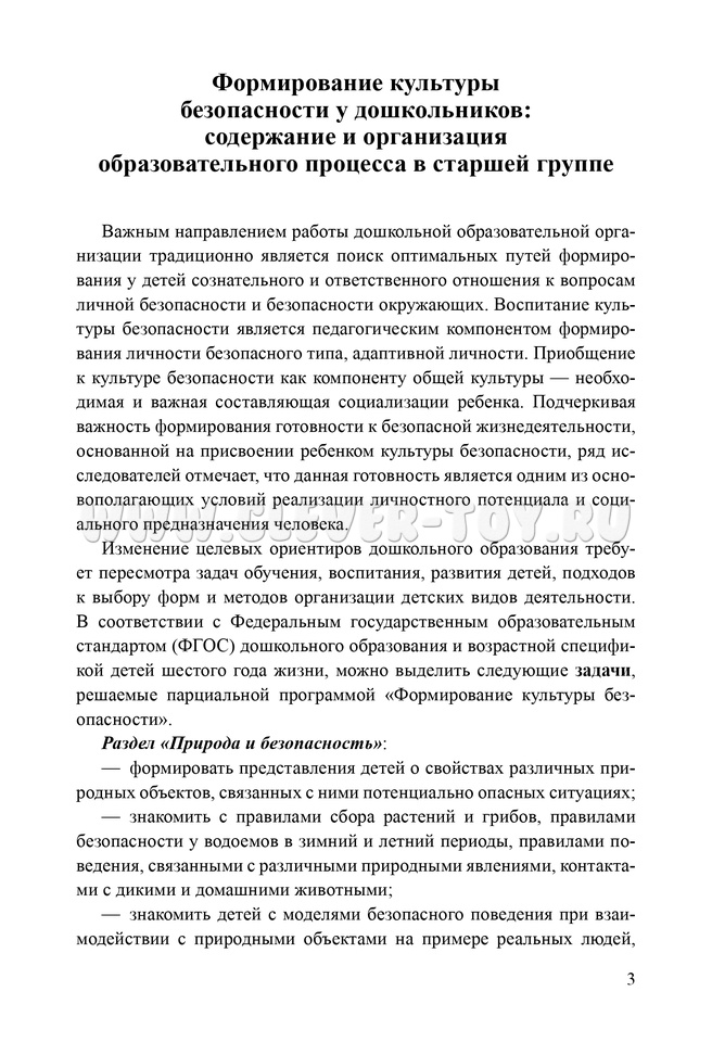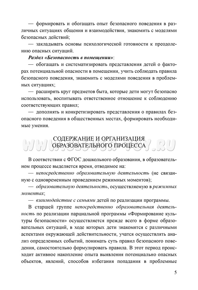 Формирование культуры безопасности. Планирование образовательной деятельности в старшей группе. ФГОС.