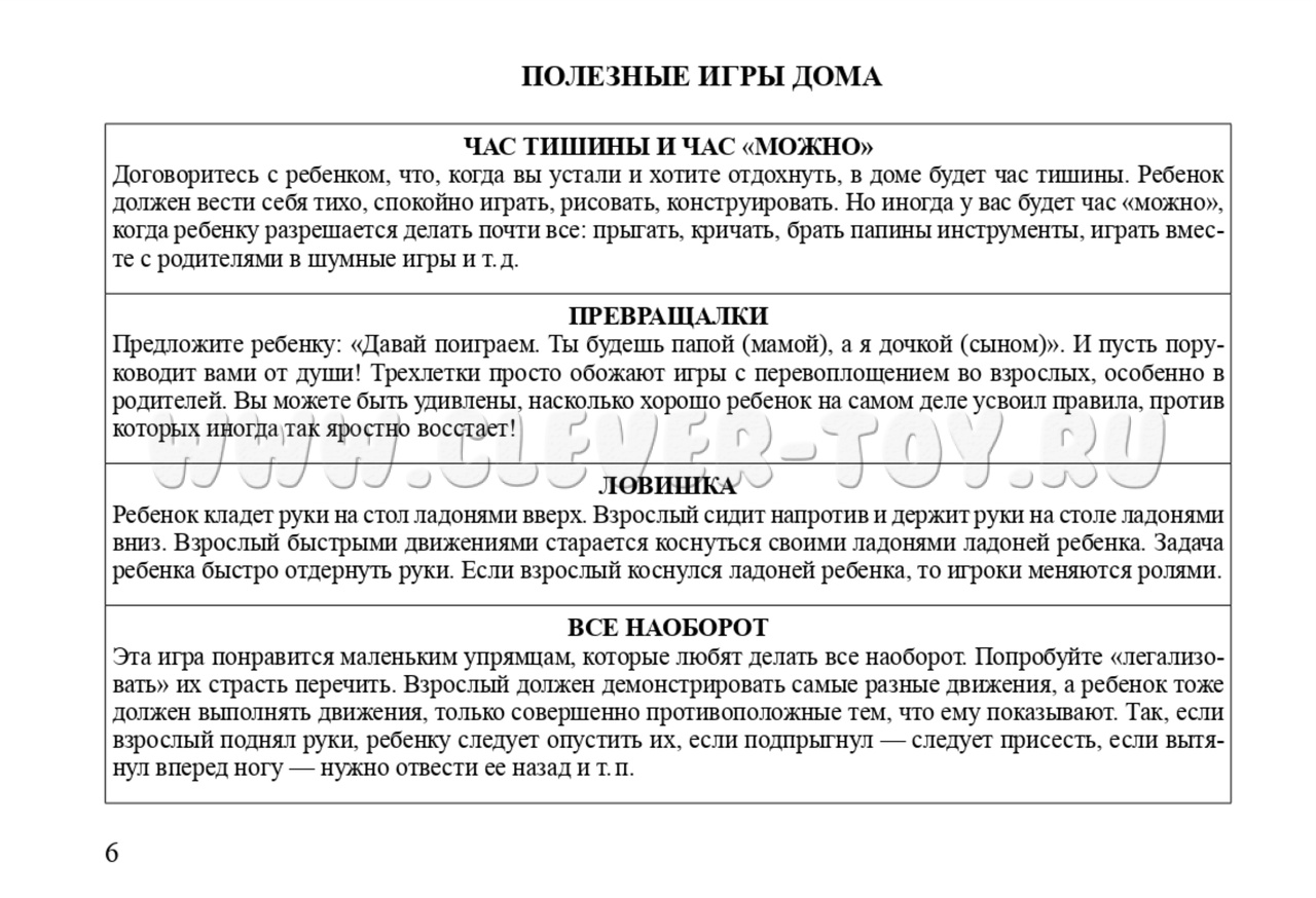 18 двухсторонних карточек-подсказок включают описание проблемного поведения ребенка, возможные его причины, рекомендации по решению проблемной ситуации, а также развивающие игры с ребенком в семье, направленные на конструктивное взаимодействие с малышом и создание эмоционально благоприятного климата в семье.