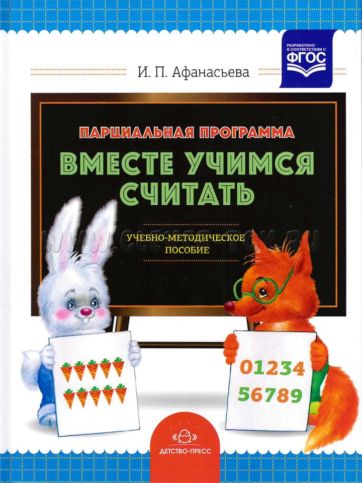 Вашему вниманию предлагается методическое пособие к игровой образовательной программе "Вместе учимся считать" петербургского педагога-практика И. П. Афанасьевой. Основными целями программы являются формирование первичных математических представлений, способствующее всестороннему развитию личности, увеличение объемов внимания, памяти и формирование мыслительных процессов у дошкольников.