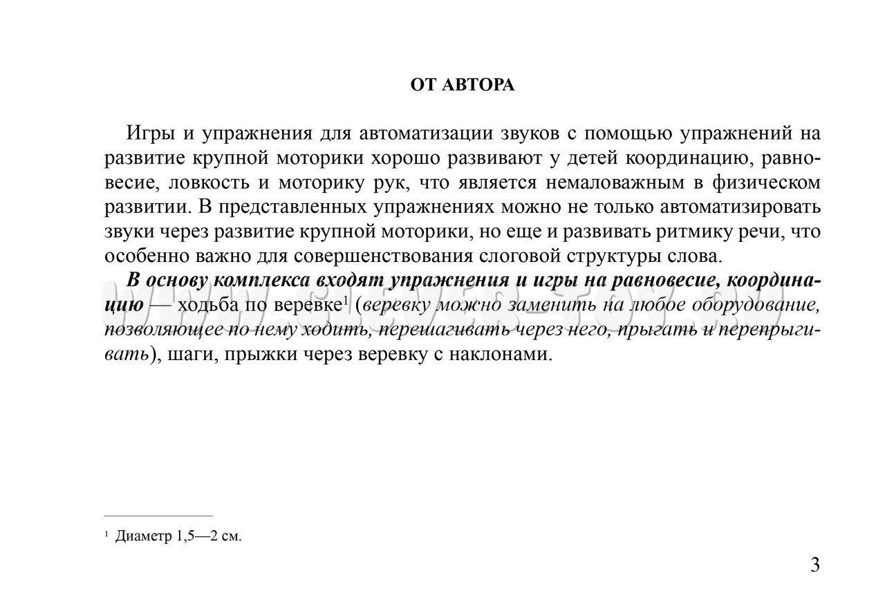 В представленных упражнениях можно не только автоматизировать звуки через развитие крупной моторики, но еще и развивать ритмику речи, что особенно важно для совершенствования слоговой структуры слова. В основу комплекса входят упражнения и игры на равновесие, координацию — ходьба по веревке, шаги, прыжки через веревку с наклонами. Издание адресовано педагогам ДОУ, развивающих центров и родителям дошкольников.