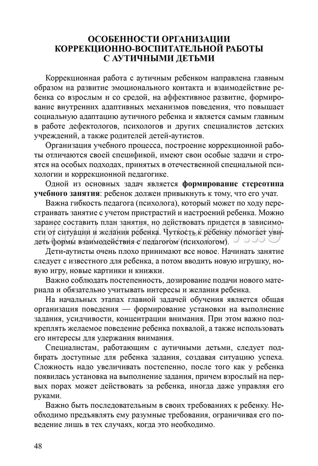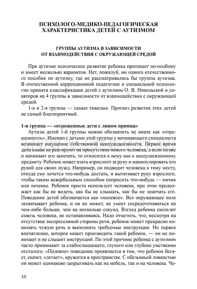 В книге обобщены теоретические и коррекционные подходы, принятые в отечественной и зарубежной специальной психологии и педагогике при оказании помощи детям с РДА (ранний детский аутизм). Предложены специальные психолого-педагогические задачи в работе с аутичными детьми в зависимости от группы (по классификации О. С. Никольской).