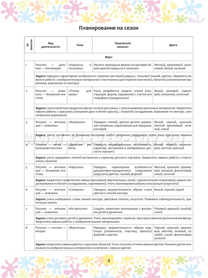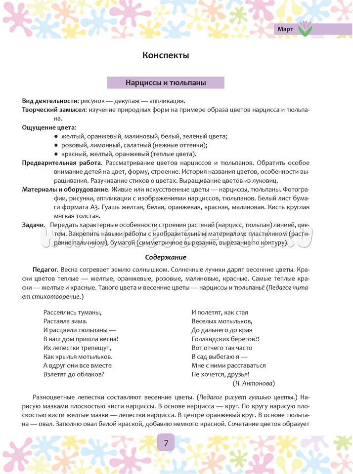 Наглядно-методическое пособие для практических работников ДОО и родителей "Конспекты интегрированных занятий по ознакомлению дошкольников с основами цветоведения". Книга содержит методические рекомендации по изобразительной деятельности, конспекты по совместной деятельности взрослого с детьми на период с марта по июнь, наглядный материал для детей старшего дошкольного возраста (от 5 до 6 лет).