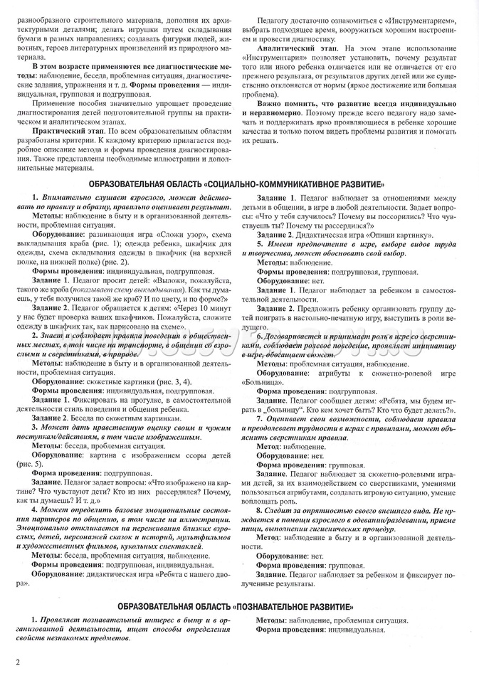 «Диагностический инструментарий» представляет собой подборку теоретических, наглядных и практических материалов, которые будут полезны педагогу при оценивании критериев развития детей старшего дошкольного возраста по различным образовательным областям.