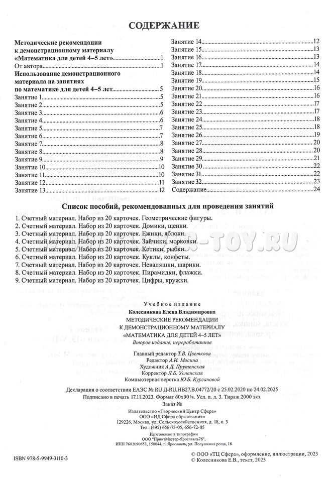 Демонстрационный материал предназначен для работы педагога с детьми 4-5 лет на занятиях по развитию математических представлений. Комплект разрезных карточек разработан в соответствии с содержанием книги "Математика для дошкольников 4-5 лет" и ра6очей тетради "Я считаю до пяти".