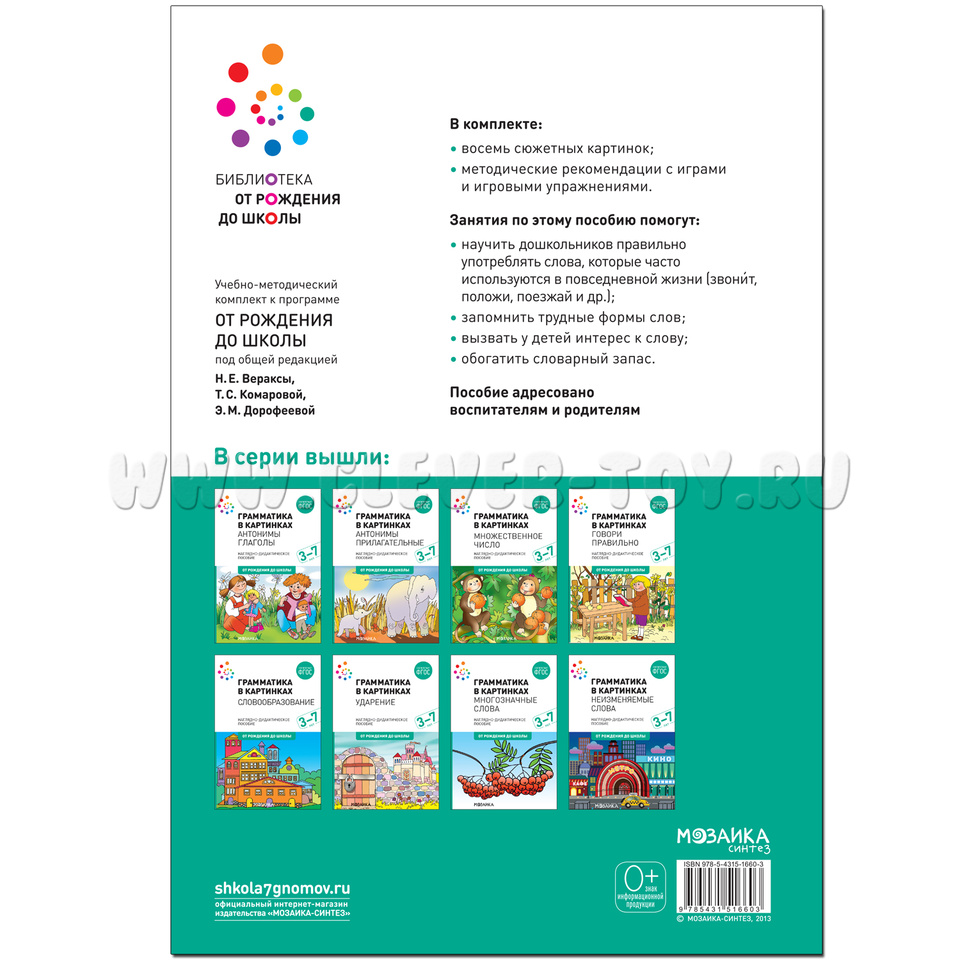 Ребенок будет правильно произносить и употреблять в речи различные слова и словосочетания, если научится чувствовать слово и отработает на практике различные языковые модели. В данном пособии собраны слова и словосочетания, в которых дети чаще всего допускают ошибки. Яркие веселые картинки, изображающие, например, как симпатичные мышки любовно чистят пылесосом довольную киску, создадут прекрасный эмоциональный настрой, и малыш легко запомнит: "Я пылесошу".