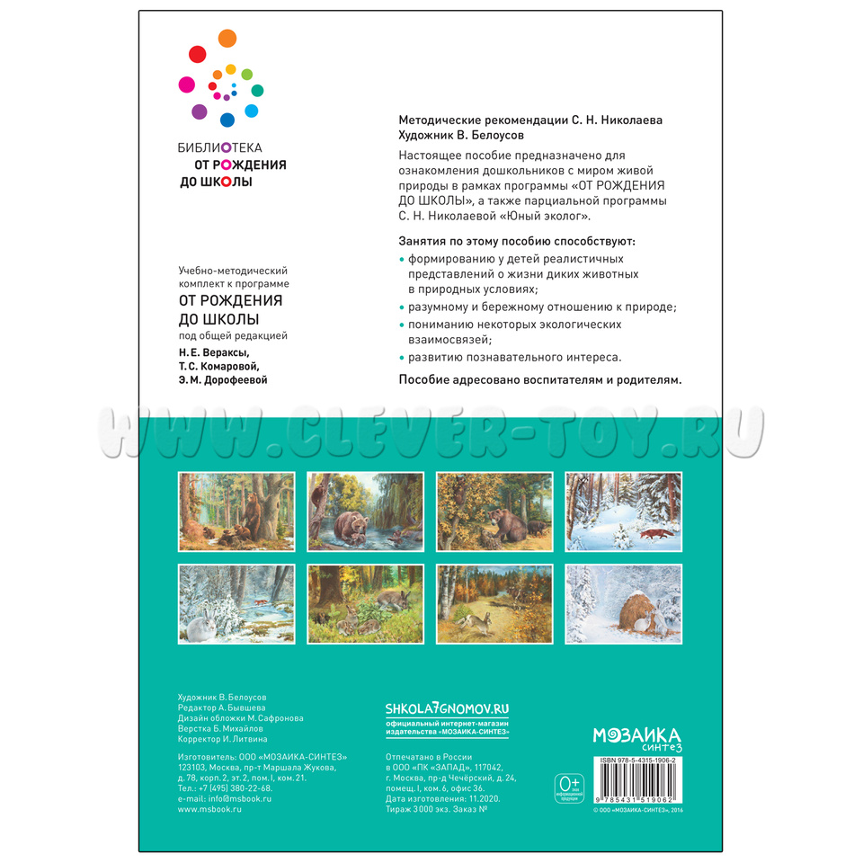 Настоящее пособие издано в рамках учебно-методического комплекта к парциальной программе "Юный эколог" и предназначено для ознакомления дошкольников с миром живой природы. В пособии представлены методические рекомендации и 8 тематических картин, иллюстрирующих жизнь бурого медведя и зайца-беляка в условиях дикой природы. Пособие способствует формированию у детей реалистических представлений о жизни диких животных в природных условиях, разумного и бережного отношения к природе, пониманию некоторых экологических взаимосвязей, развитию познавательного интереса.