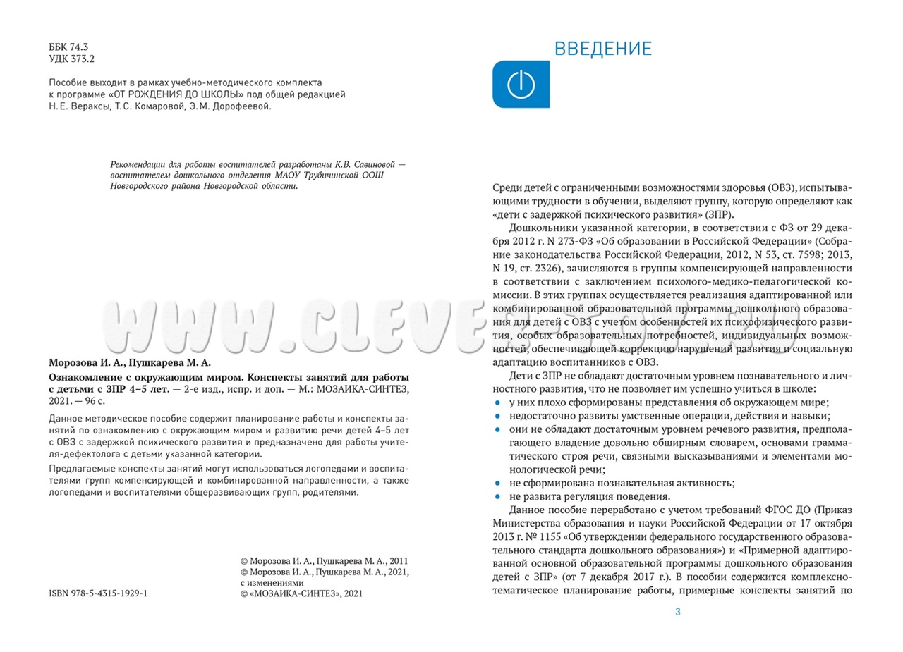 Планирование работы и конспекты занятий по ознакомлению с окружающим миром и развитию речи детей 4-5 лет с ОВЗ с задержкой психического развития.