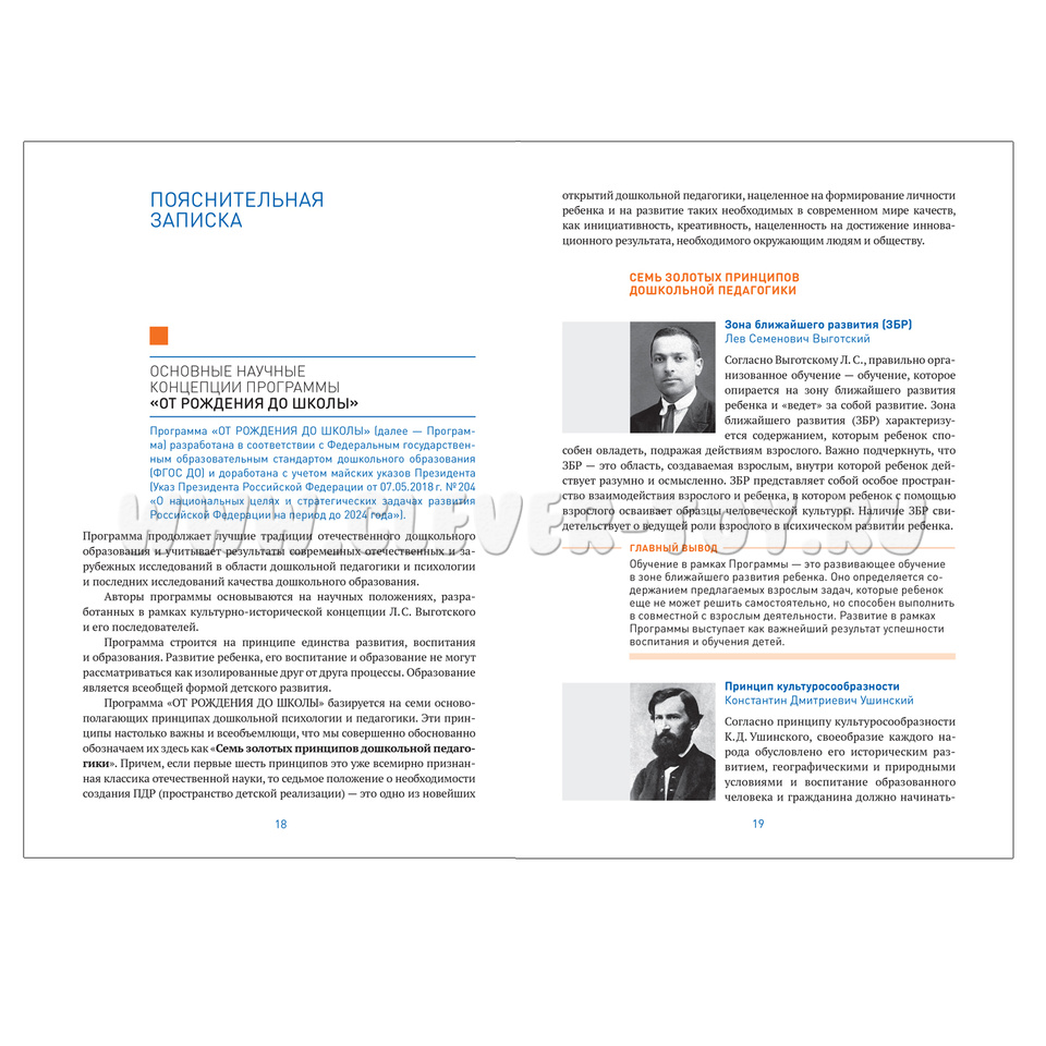 В программе «ОТ РОЖДЕНИЯ ДО ШКОЛЫ» представлены все основные компоненты оптимальной организации образовательно-воспитательного процесса с учетом новейших достижений науки и практики российского и зарубежного дошкольного образования.
