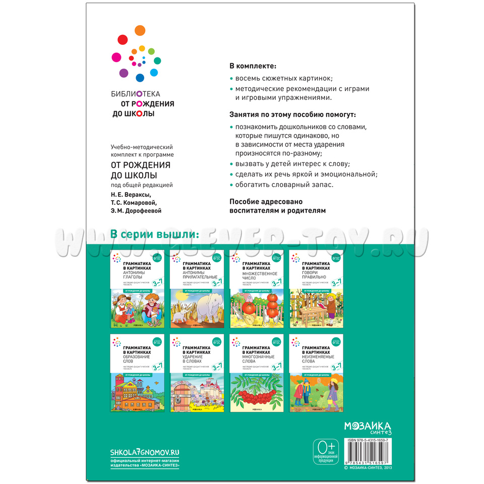 Правильно поставленное ударение не только свидетельствует об общей культуре человека, но и помогает различать по смыслу, казалось бы, похожие слова, указывает на нужную грамматическую форму слова. С помощью картинок из данного пособия на примере уже знакомых слов малыш сможет потренироваться в правильной постановке ударения.