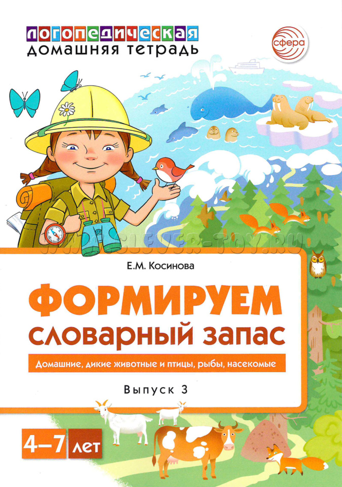 Домашняя логопедическая тетрадь 4-7 лет Формируем словарный запас Тетрадь 3: Домашние, дикие животные и птицы, рыбы, насекомые.