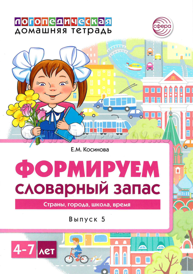 Домашняя логопедическая тетрадь 4-7 лет Формируем словарный запас Тетрадь 5: Страны, города, школа, время.