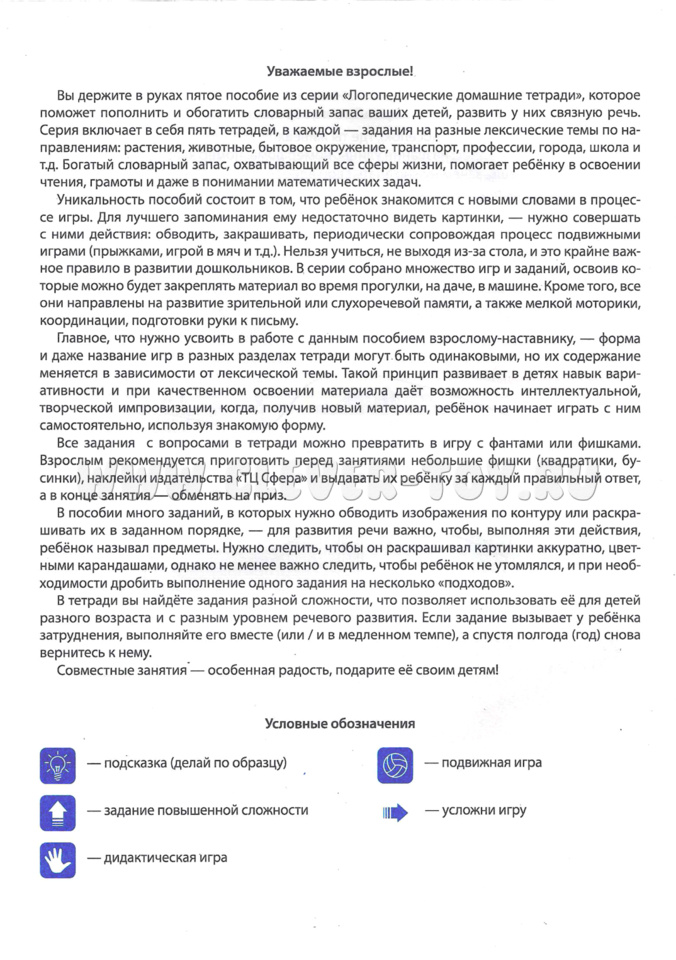 Серия включает 5 тетрадей, в каждой - задания на разные лексические темы по направлениям: Богатый словарный запас, охватывающий все сферы жизни, необходим детям в освоении чтения, грамоты и даже в понимании математических задач.