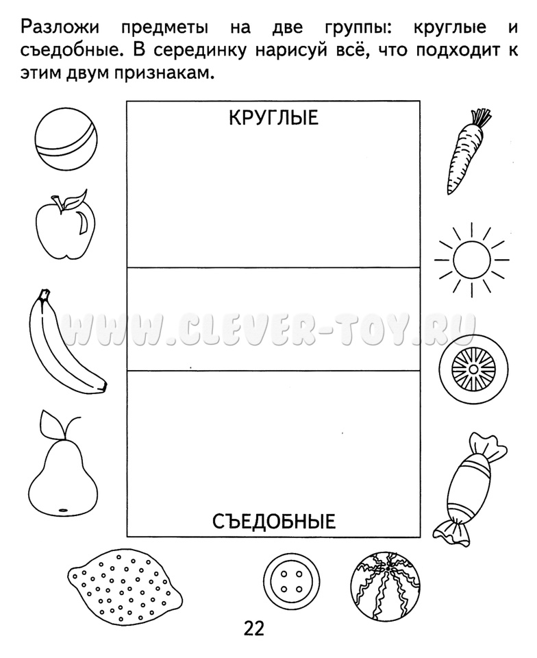 - все большие предметы раскрась - желтым, маленькие - красным, лишние - зачеркни;