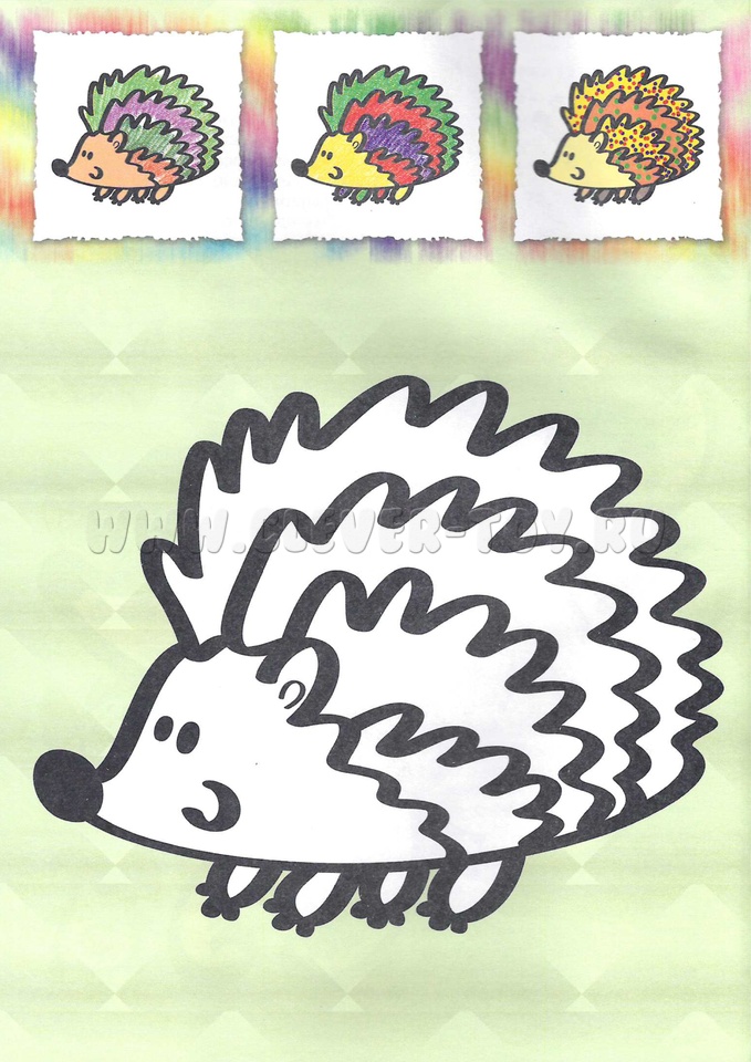 Многие рисунки ребёнок может дополнить по своему желанию. Малыши очень любят "кормить" животных: в лапах белки появляется орешек или грибок, а на иголках ежа - яблоки и груши. В 3-5 лет дети свободно выходят за пределы контурного изображения - рисуют для своей картинки "обстановку": волны для кораблика, дорогу для машины, лужицу для утёнка, лужайку для цветка.