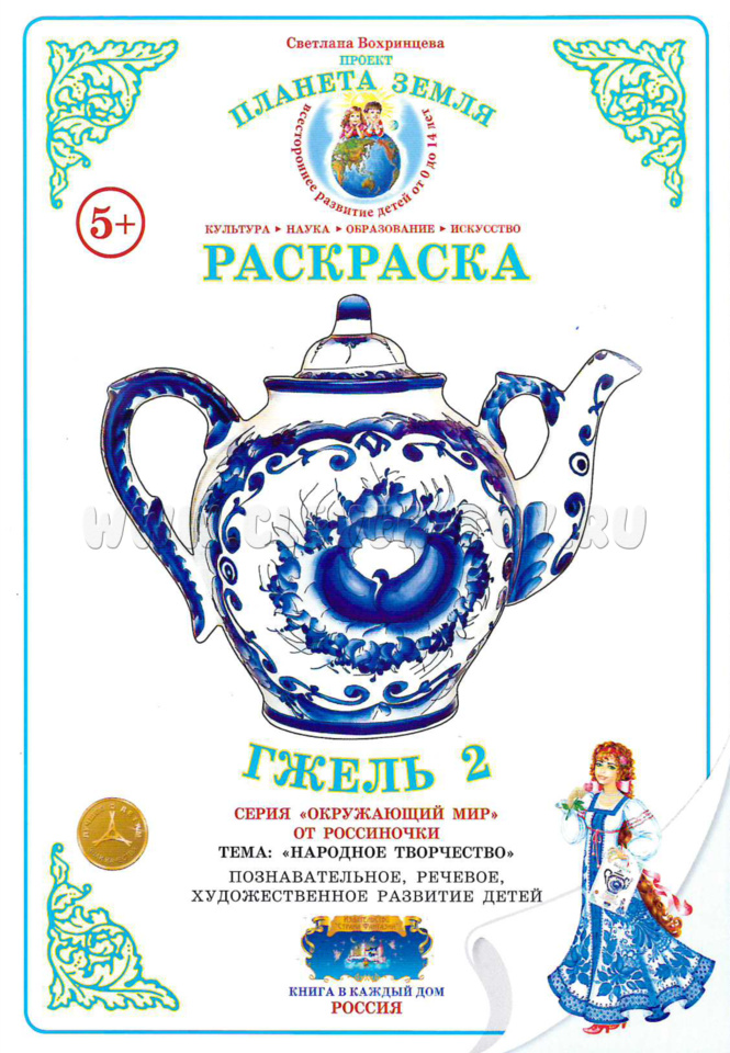 Раскраска "Гжель 2" предназначена для детей дошкольного и младшего школьного возраста. Она способствует: