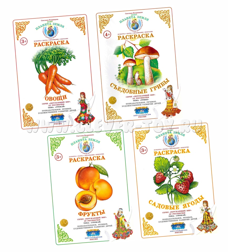 Набор из 4 раскрасок "Урожай" предназначена для детей дошкольного и младшего школьного возраста. Она способствует: