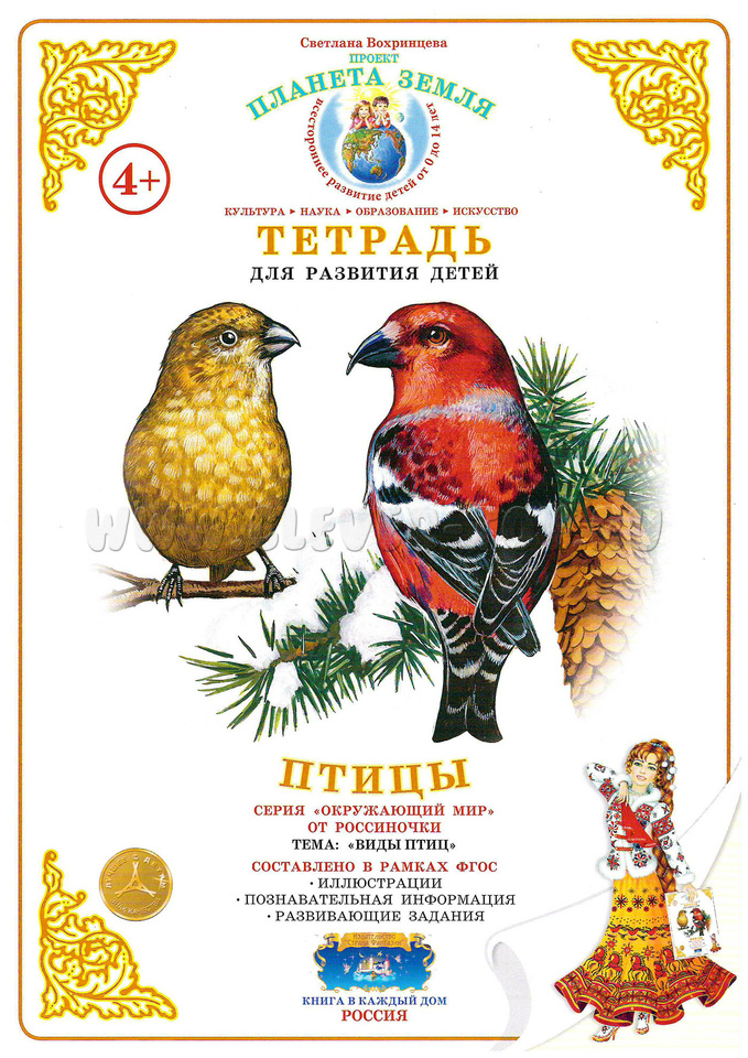 Тетрадь для общения и развития детей "Птицы" содержит: красочные иллюстрации разных видов птиц и познавательную информацию о них.